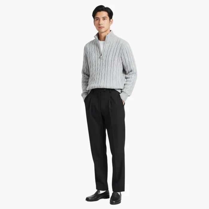 Jersey TAEBAEK con cremallera y punto trenzado: confeccionado con materiales premium, aporta calidez y un aspecto sofisticado, convirtiéndose en una prenda versátil para el día a día.